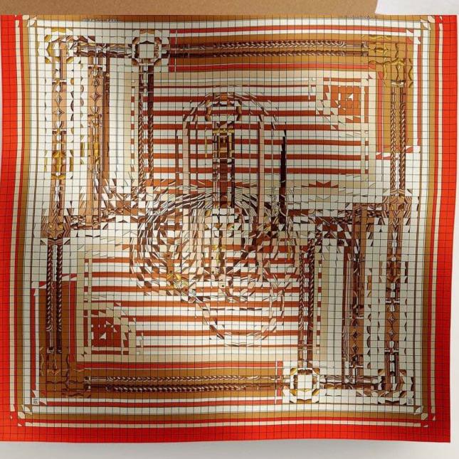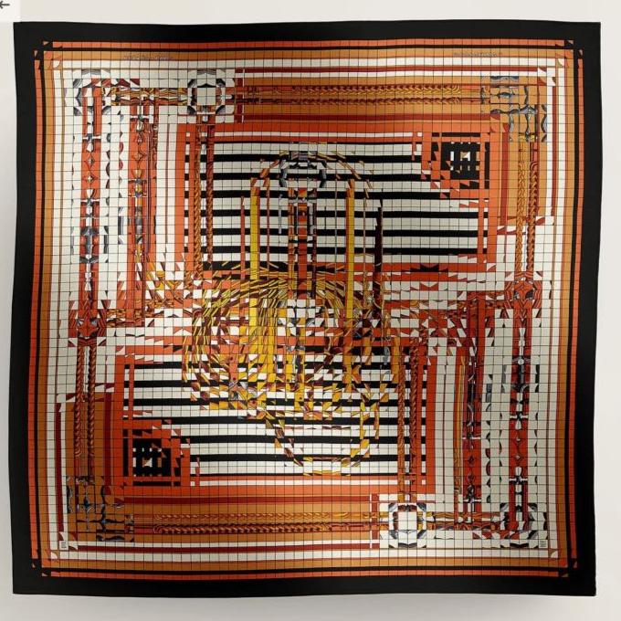 Chevaux Dechaines Shawl 135 CM IN Orange Colorful Cashmere Silk 373685