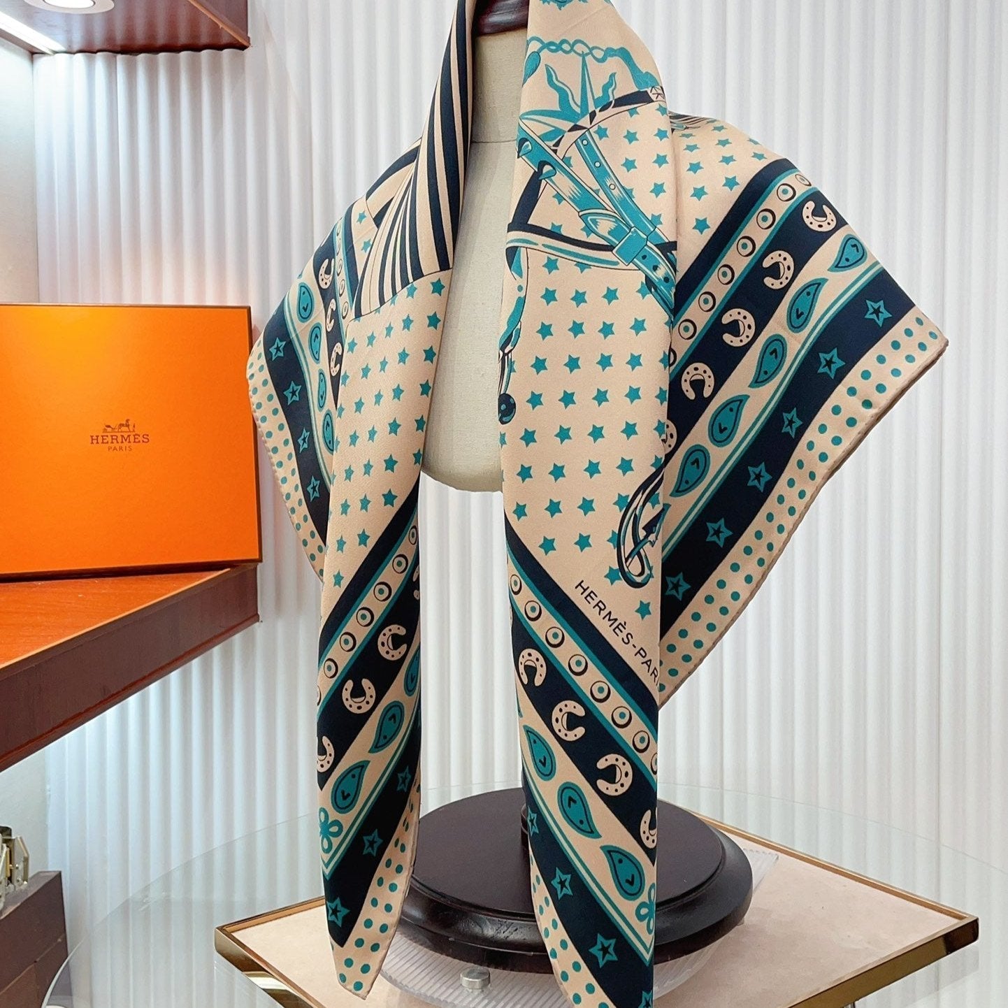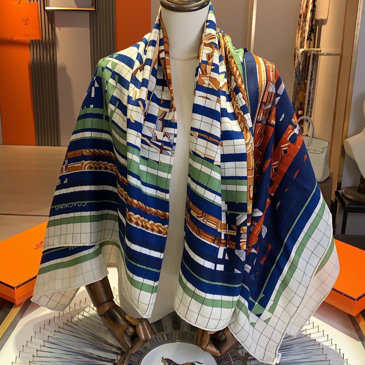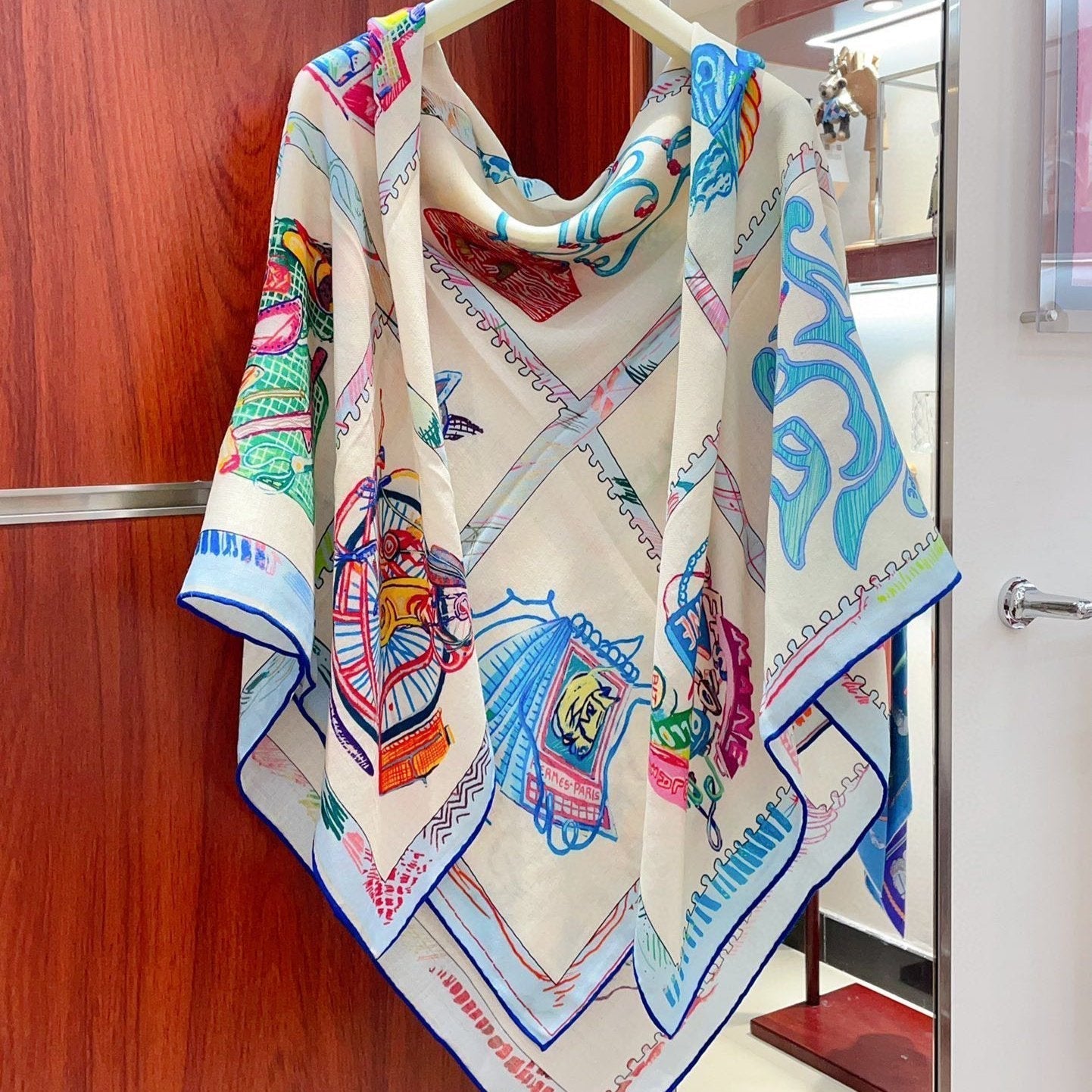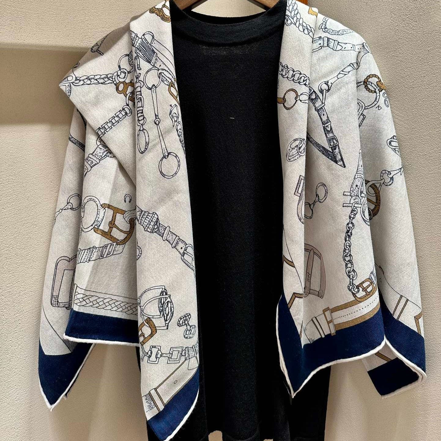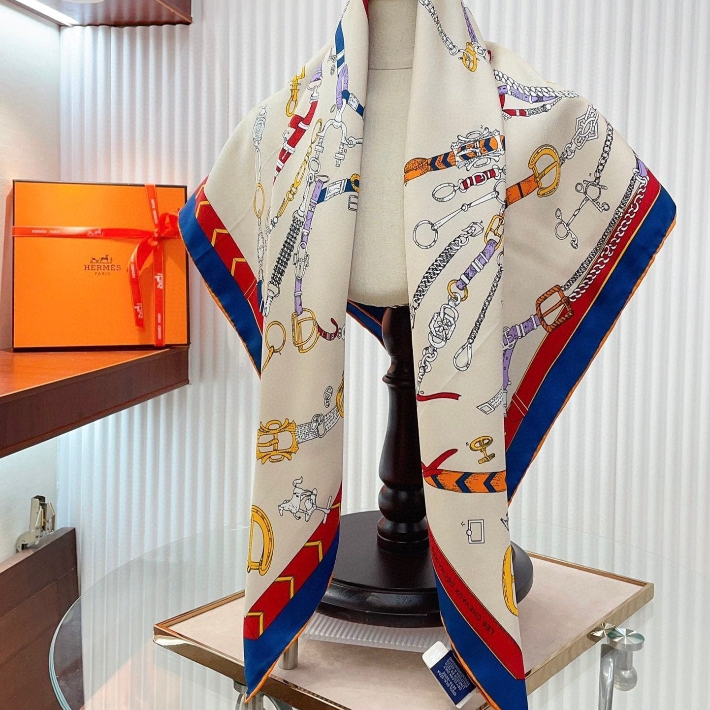 Cheval De Legende Scarf 140 CM Ivory White Pattern Cashmere And Silk