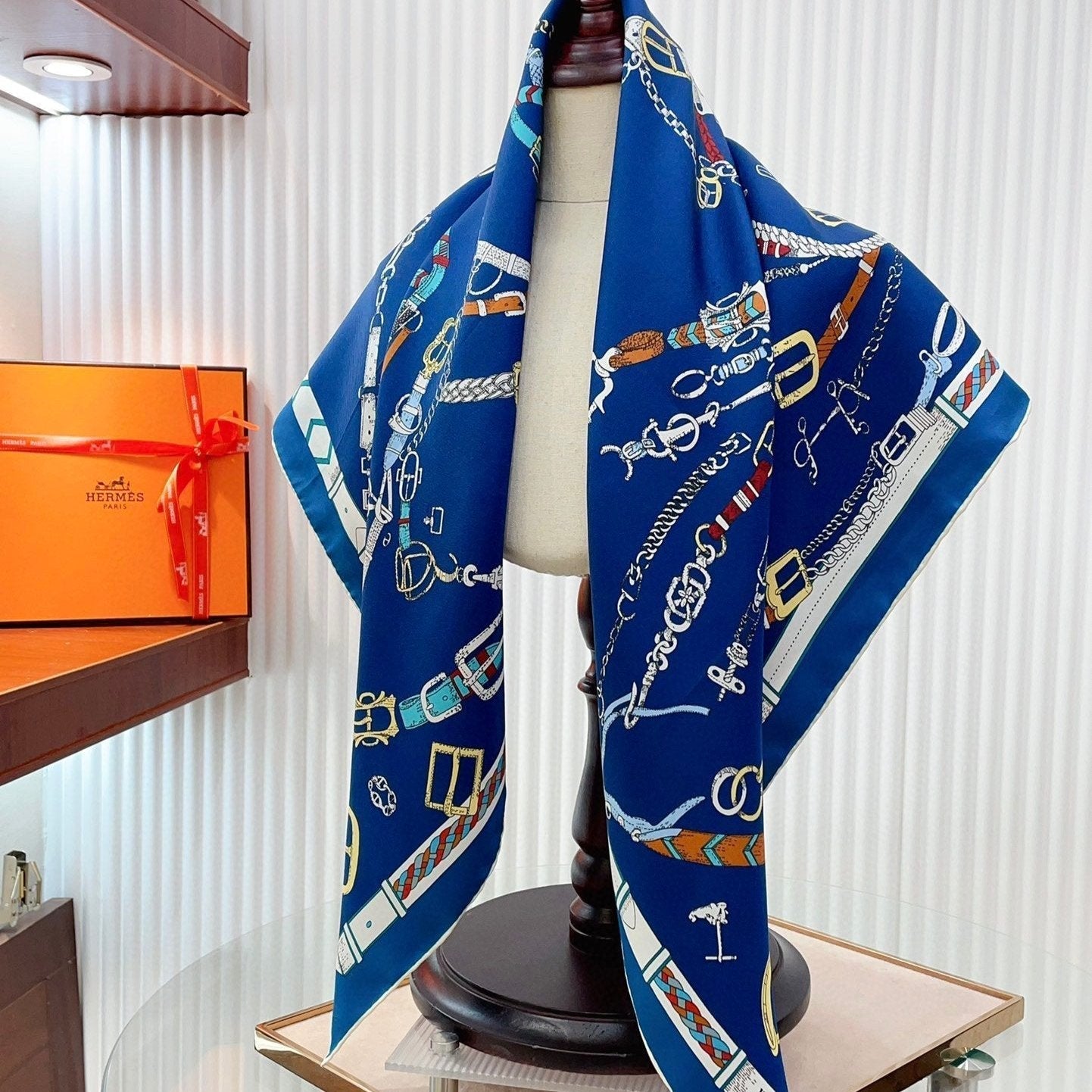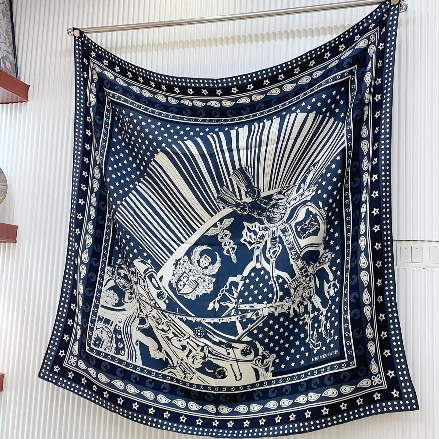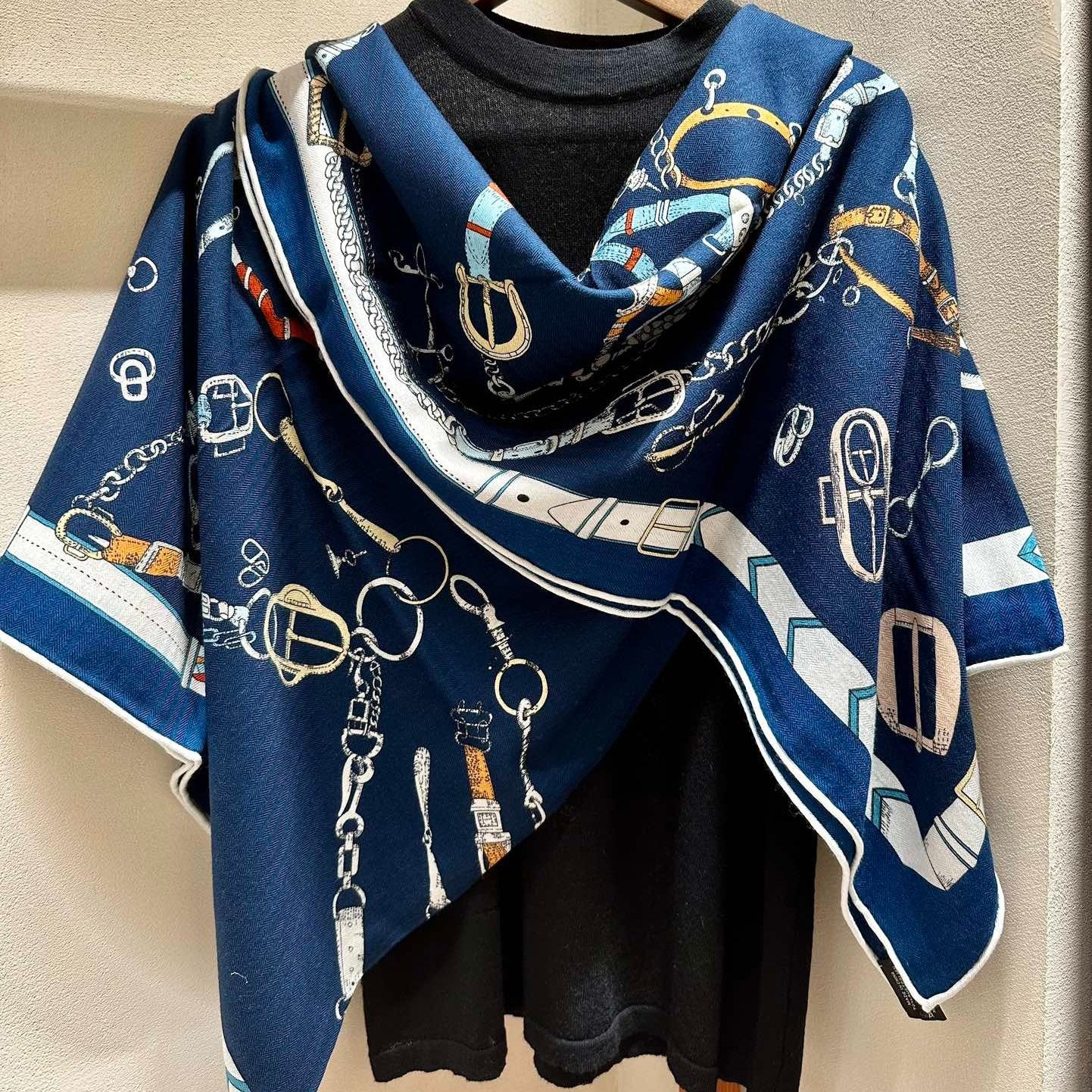 Cheval De Legende Scarf 140 CM Charcoal Blue Pattern Cashmere And Silk