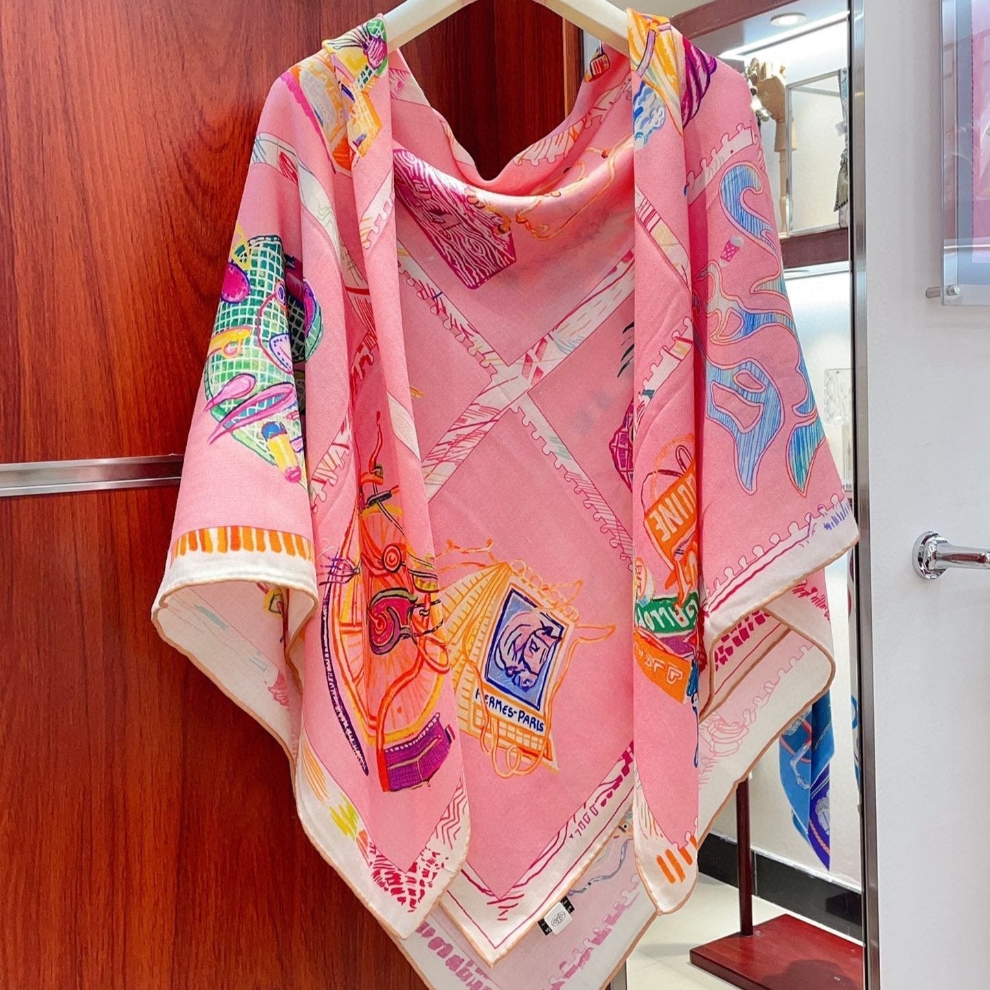 Coaching Deja-Vu Shawl 140 CM Pink Colorful Cashmere And Silk 398264