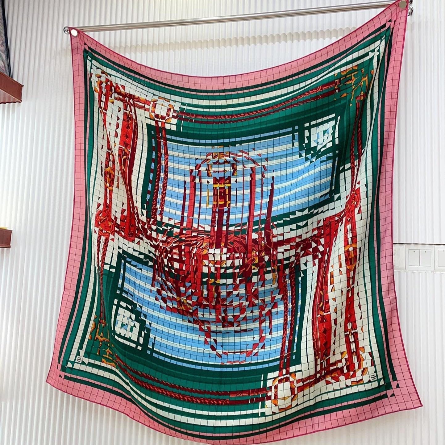 Chevaux Dechaines Shawl 135 CM IN Green Colorful Cashmere Silk 373684