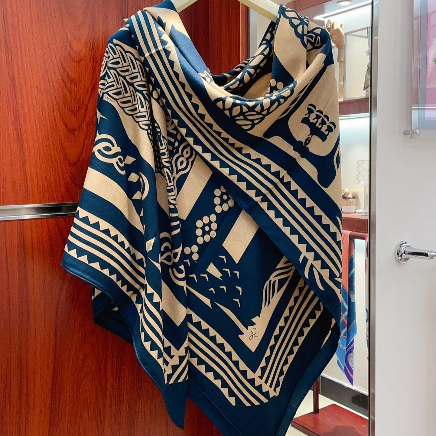 Fantaisie d'Etriers Shawl 140 CM Navy Blue Silk