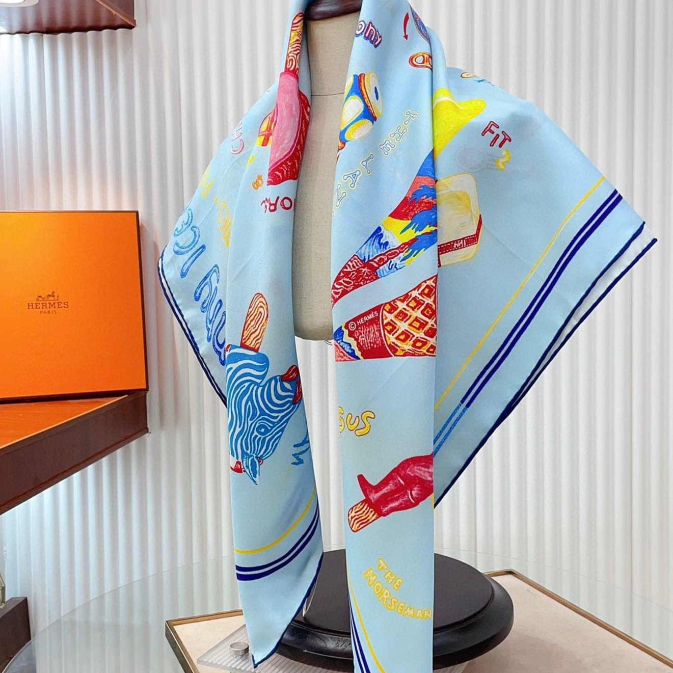 Faubourg Party Scarf 90 CM In Blue Colorful Silk Twill 198582