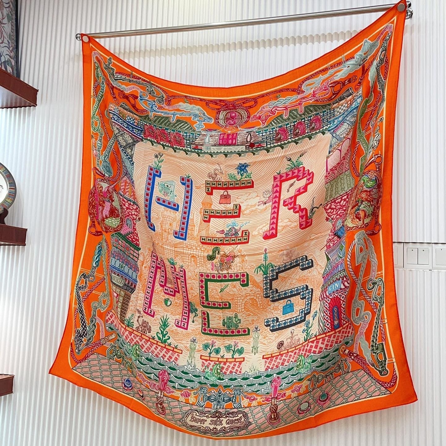 Flagship Silk Scarf 90 CM Pink Orange Colorful
