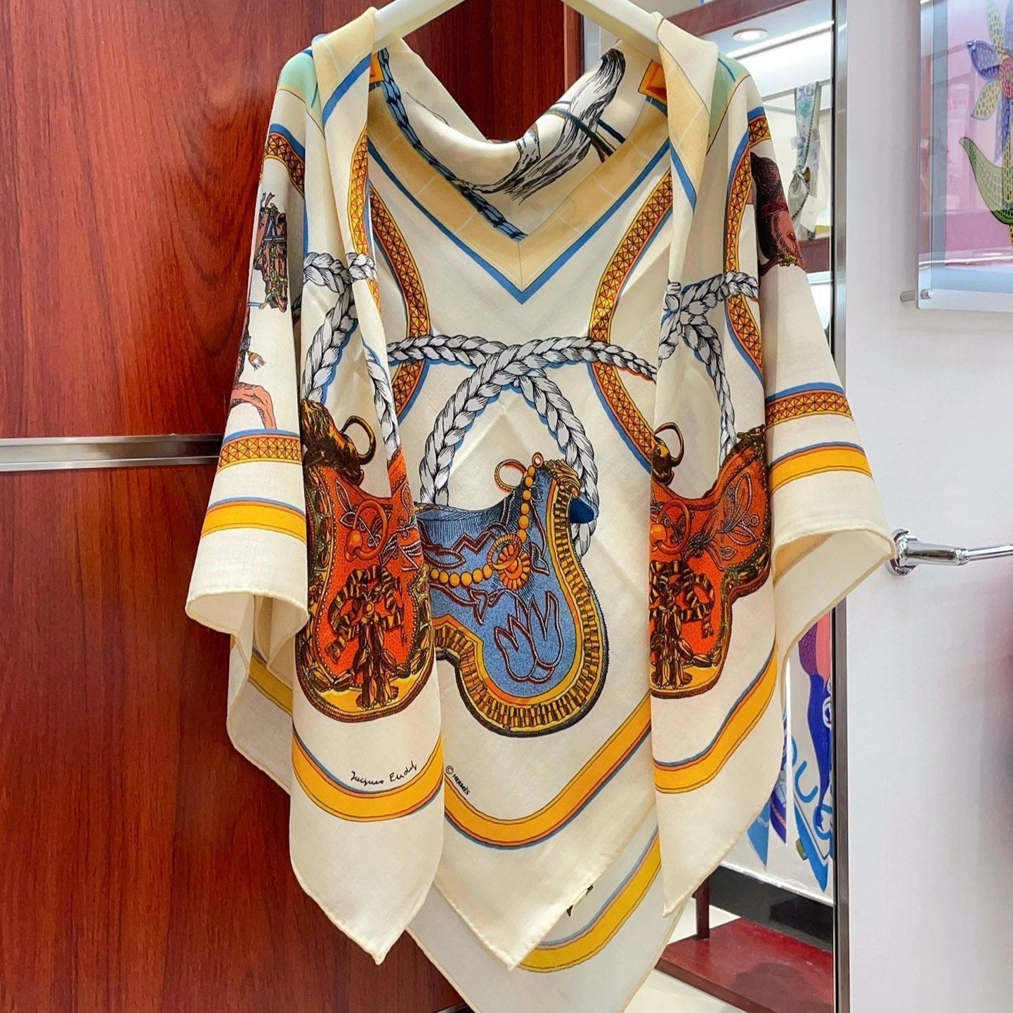 Fantaisie d'Etriers Shawl 140 CM Red Colorful Silk