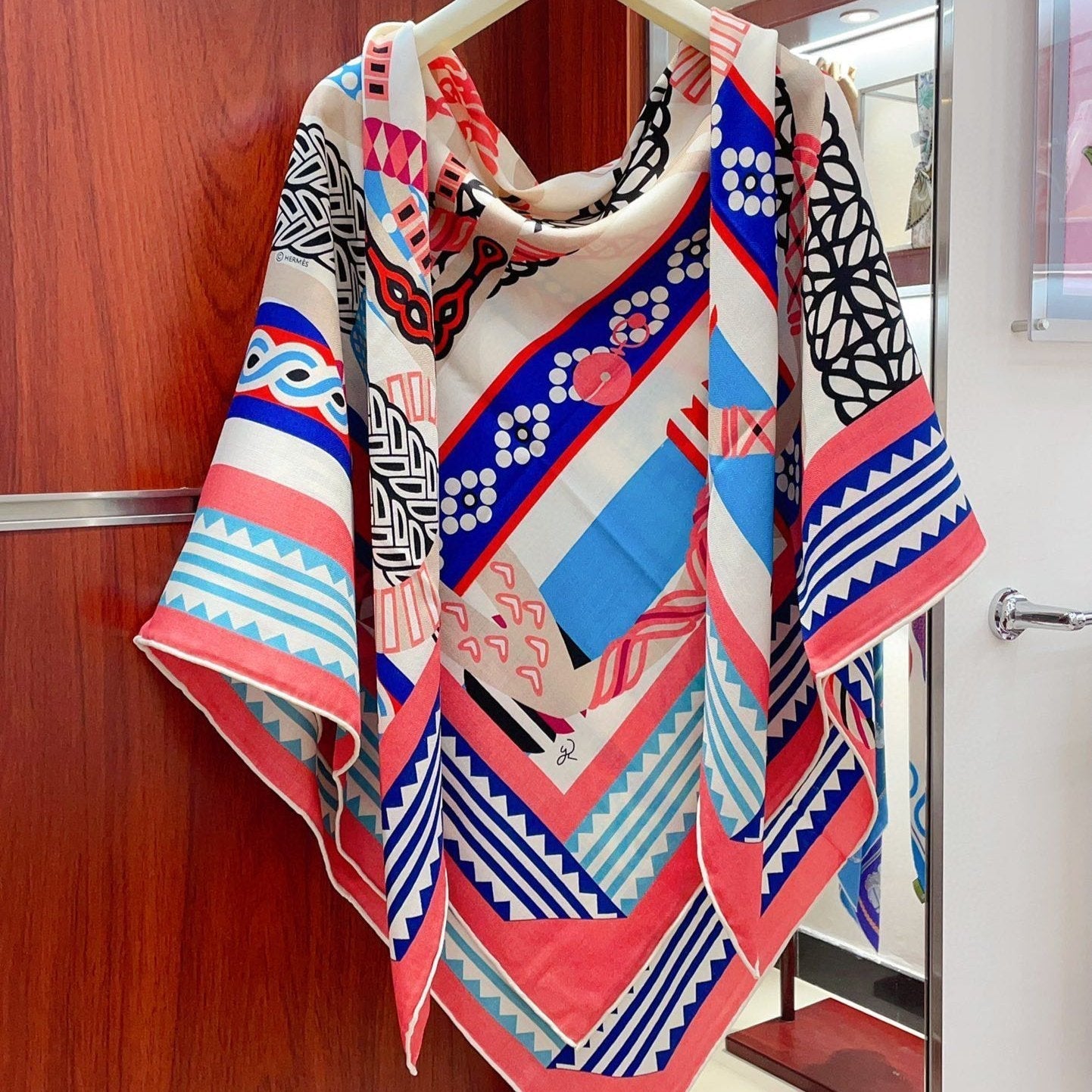 Flagship Scarf 135 CM White Colorful Cashmere And Silk 402079