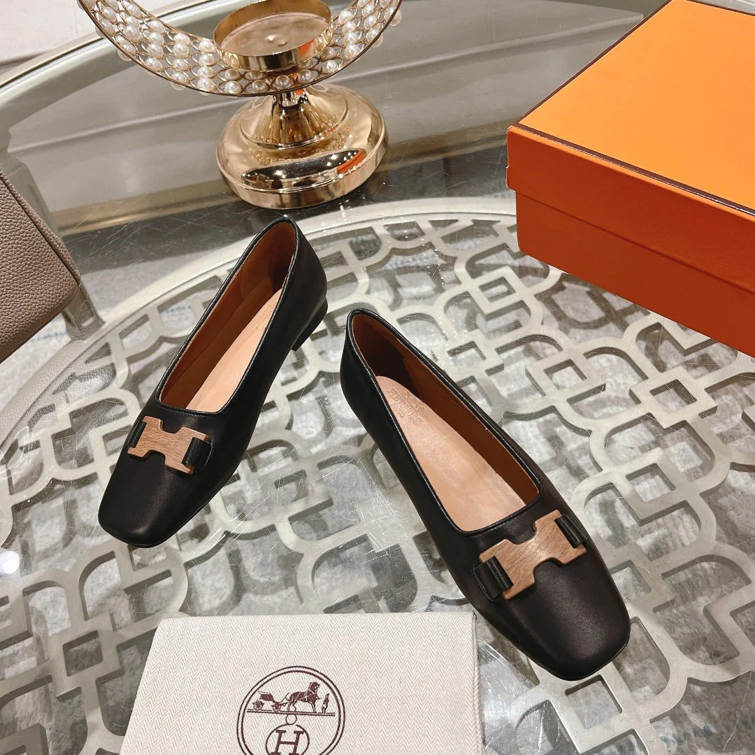 H-BUCKLE BALLLET FLAT BLACK CALFSKIN