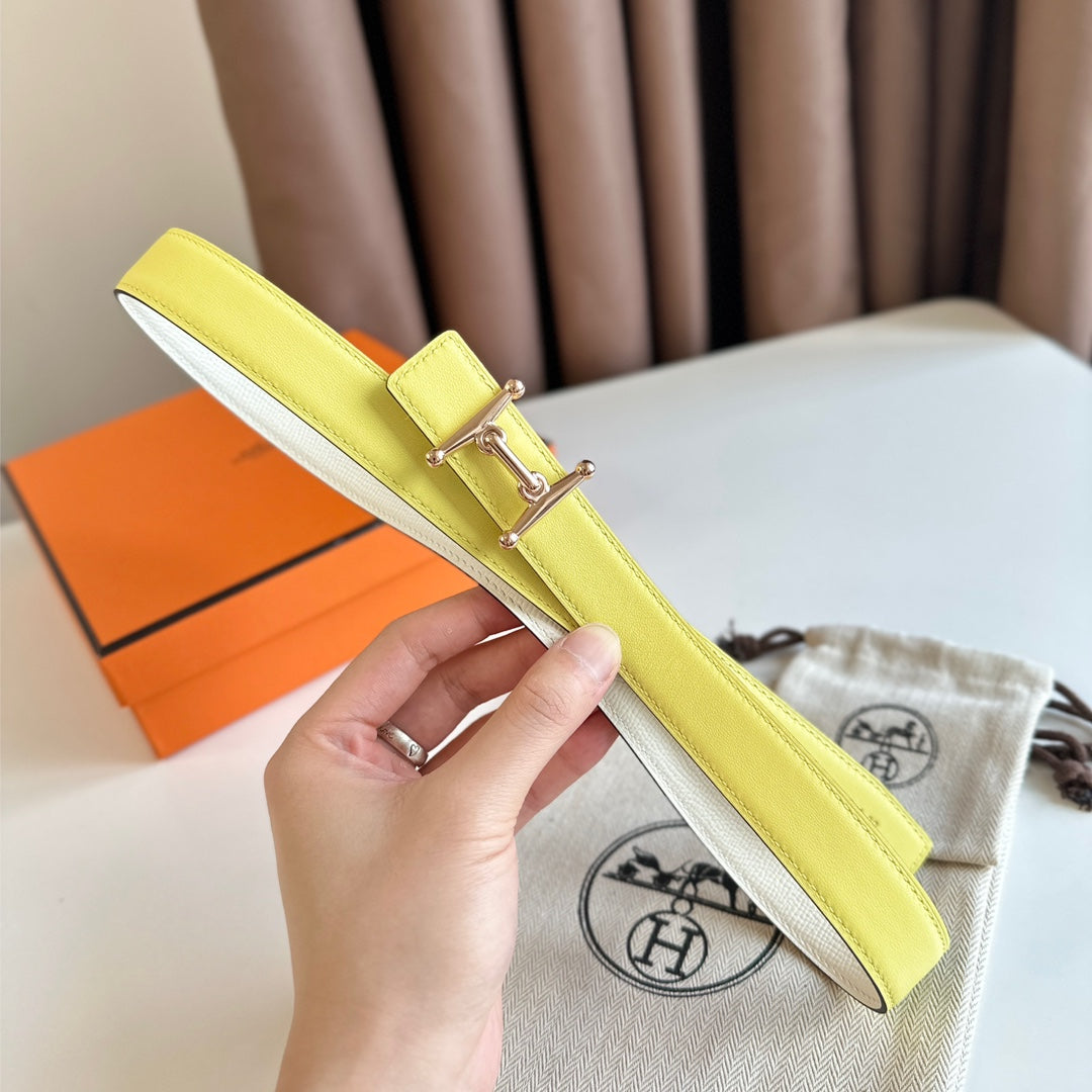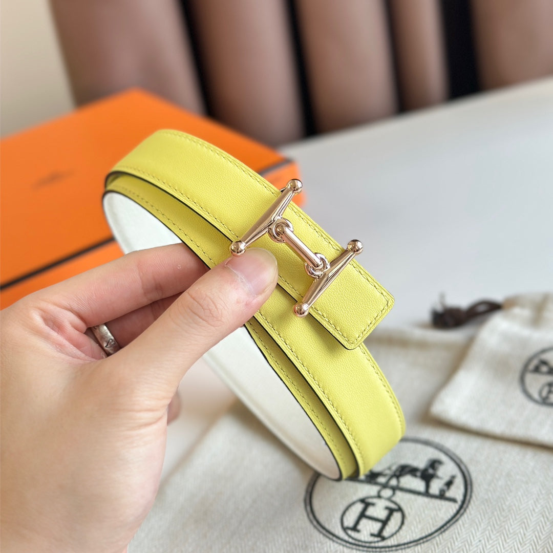 HM Pink Gold Mors H buckle & Reversible 24 mm belt Yellow Beige leather 125366