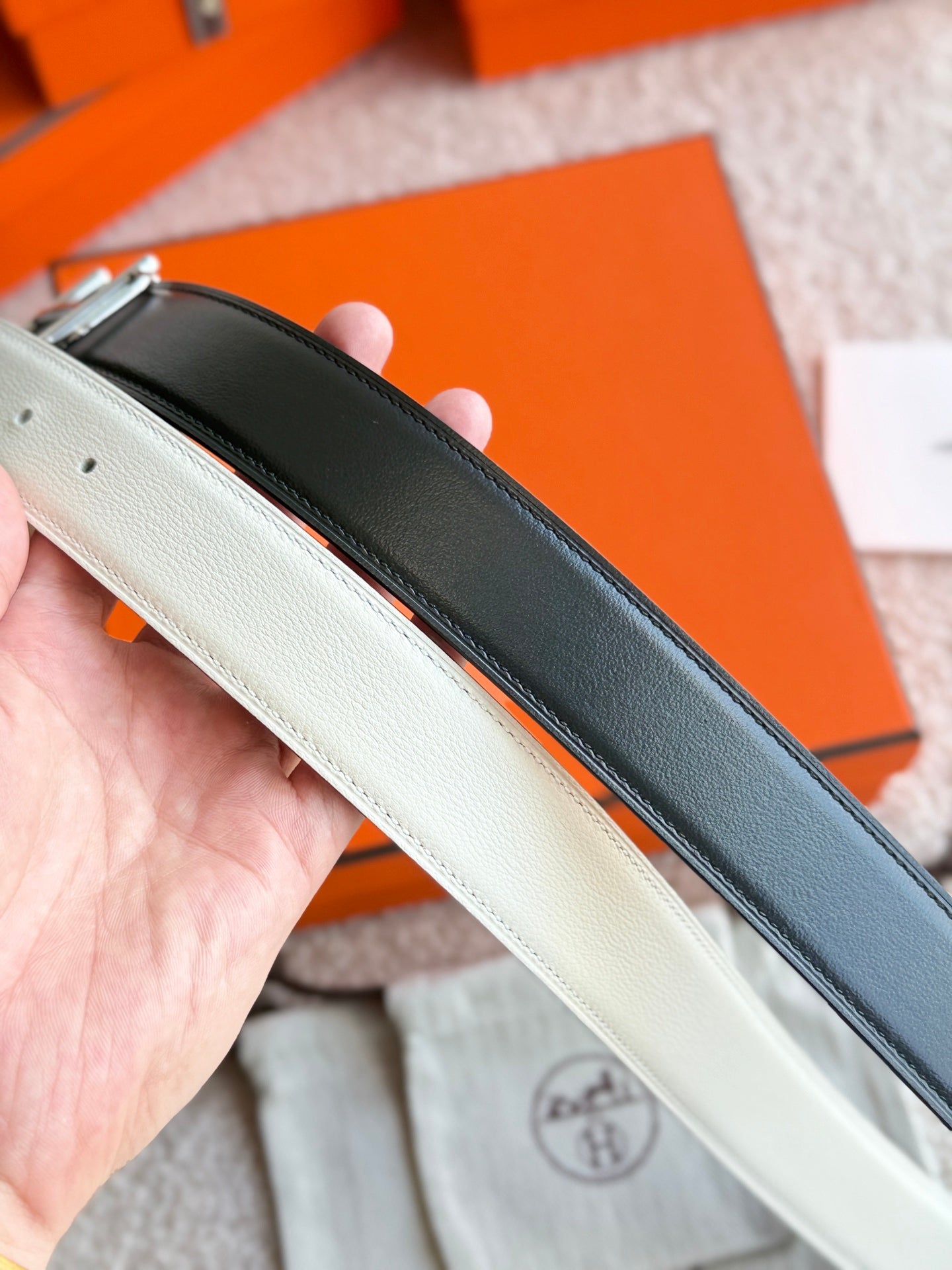 HM Silver Buckle 32mm Royal Belt Ivory Leather 188424