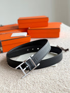 HM Silver Quentin Reversible 32mm Belt Black Leather 188086