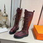 HM Lace Up Boots 25mm Belt Buckle Mauve Brown Leather 466590