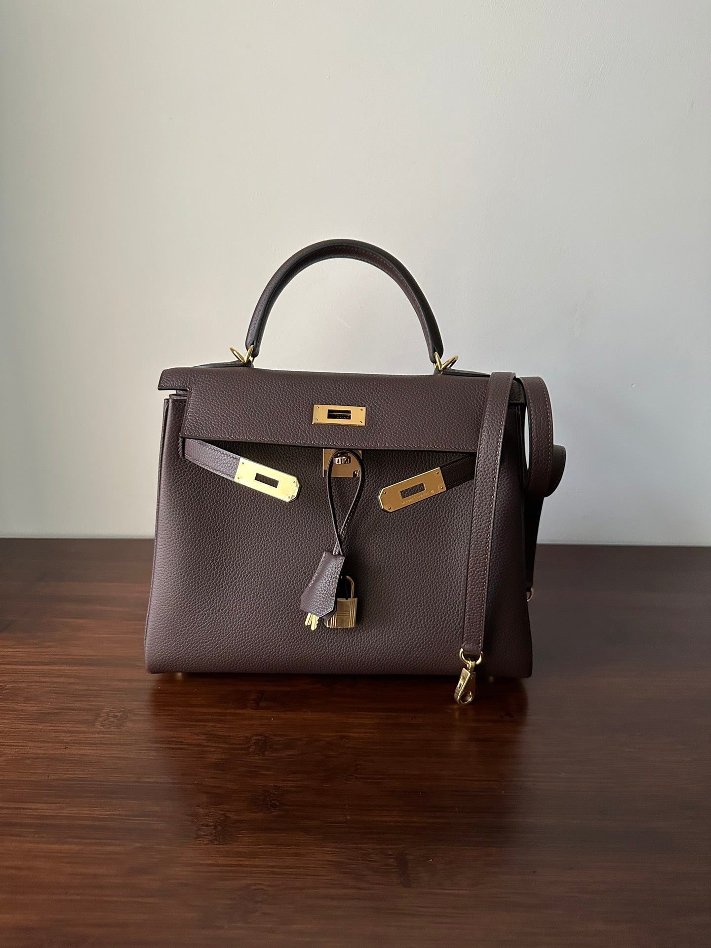 HM KELLY 28CM CHOCOLATE TOGO GOLD HARDWARE