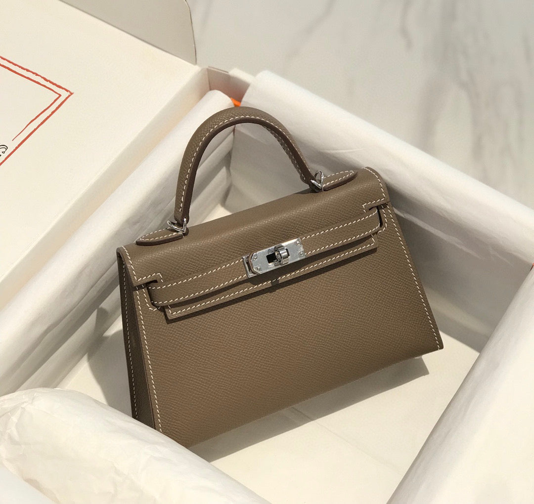 HM KELLY MINI 20 ETOUPE EPSOM SILVER HARDWARE