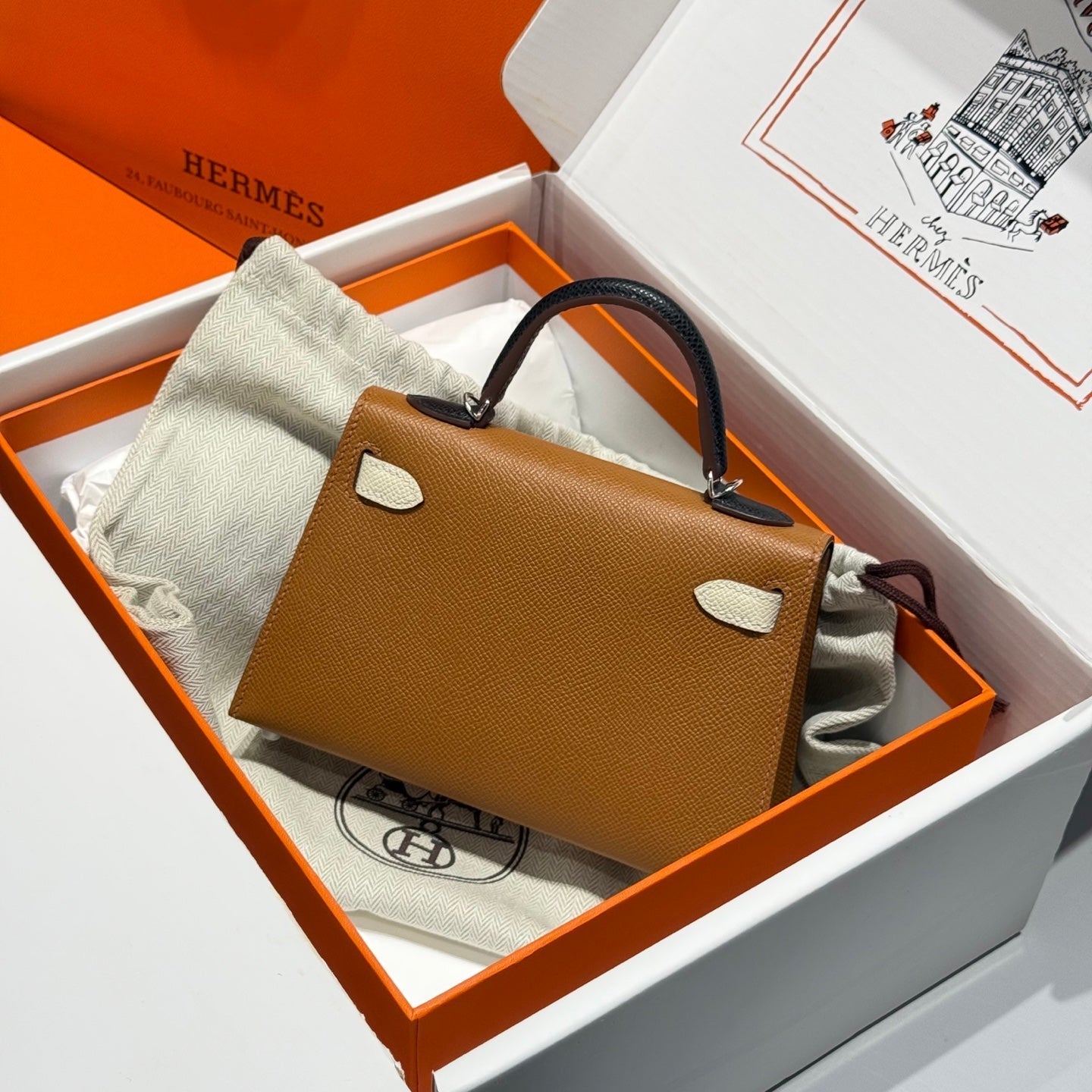 HM Mini Kelly 19 Golden Brown mix Black Epsom 243107
