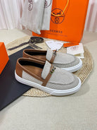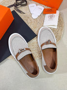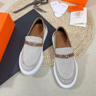 HM Buckle Casual Loafer Brown Cowhide Cloth 317045