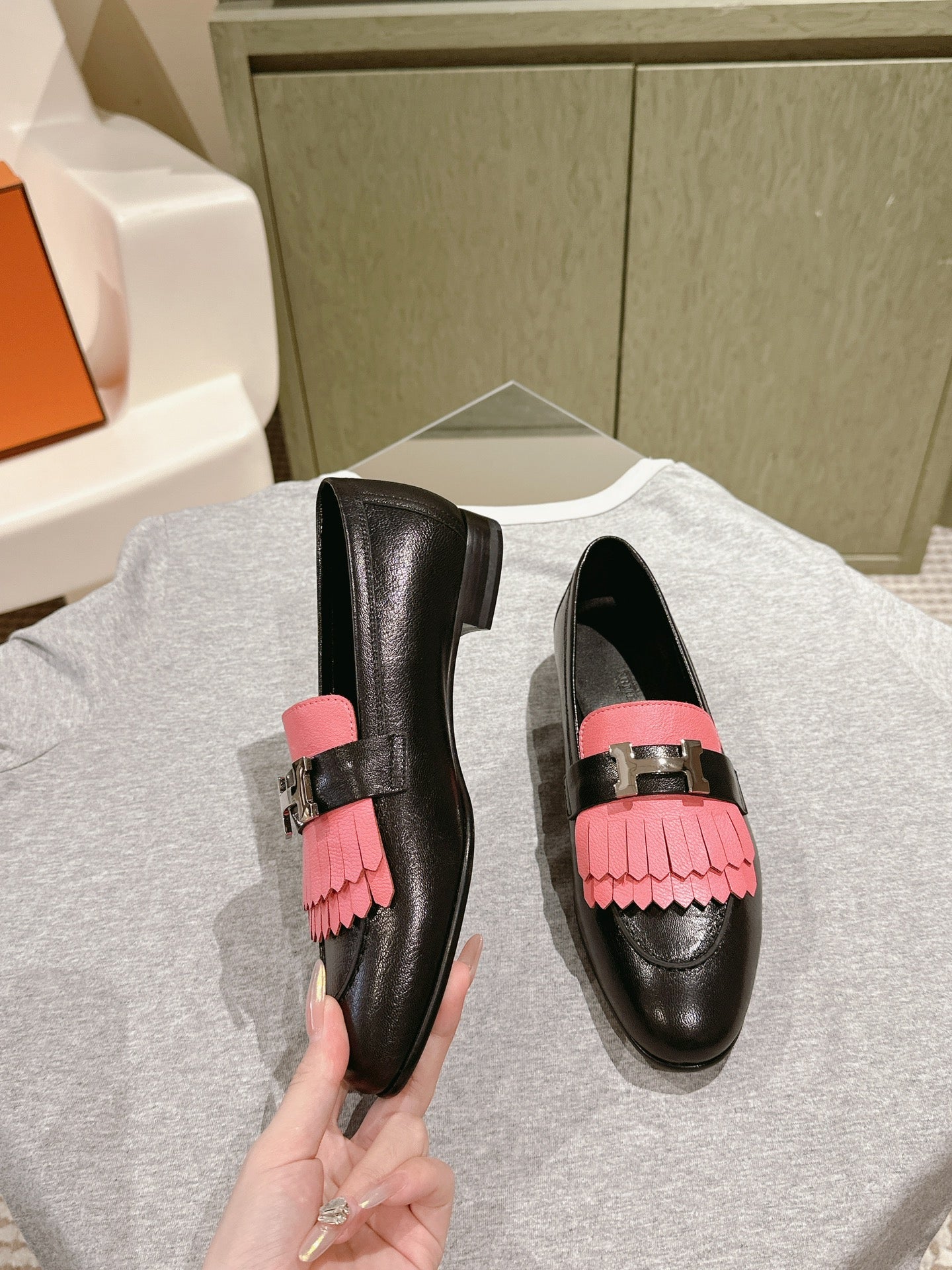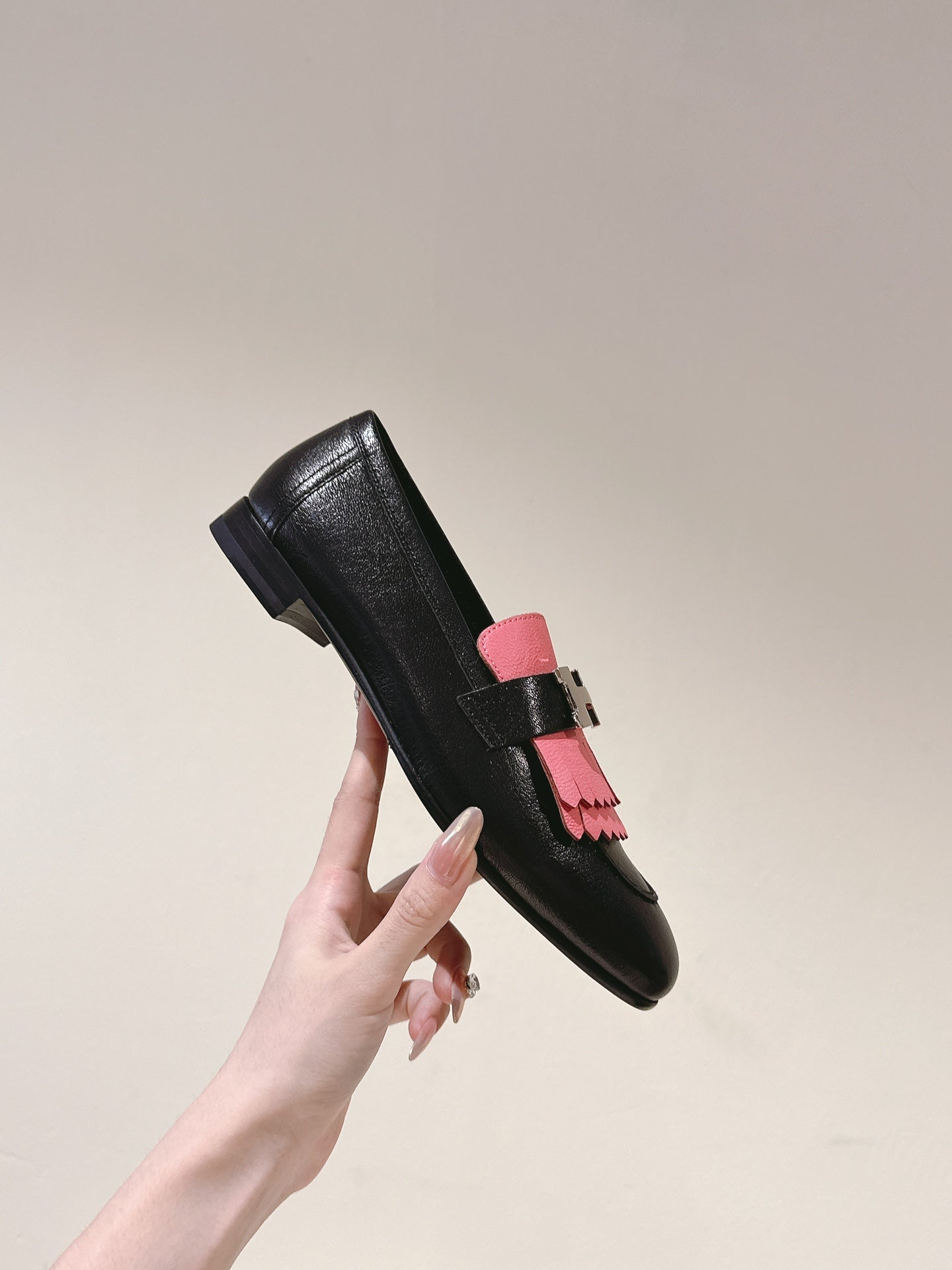HM Mocassins Royal Loafers Black PInk Sheepskin 445011