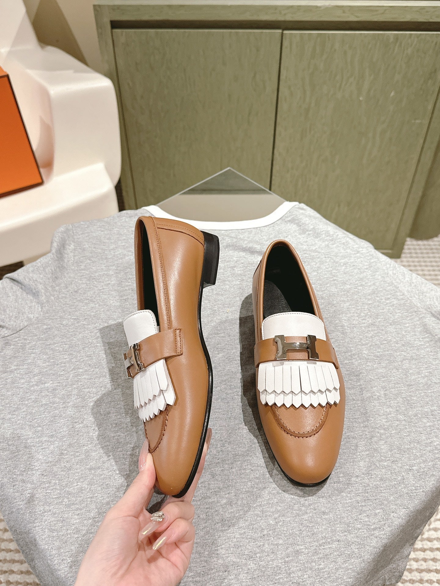 HM Mocassins Royal Loafers Caramel White Sheepskin 445008