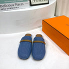 IENA MULE LAPIS CANVAS AND CARAMEL CALFSKIN