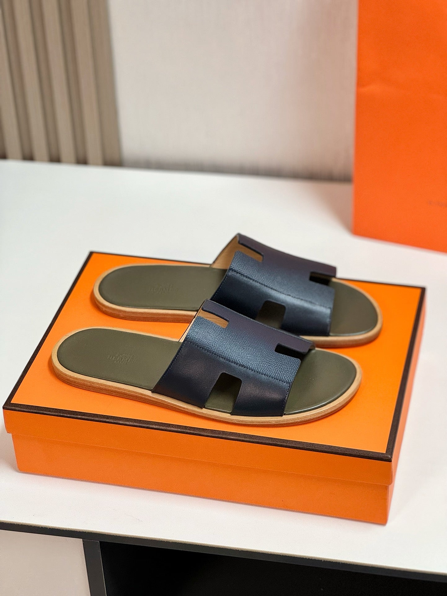 IZMIR SANDAL MOSS MIX BRIGHT NAVY LAMBSKIN