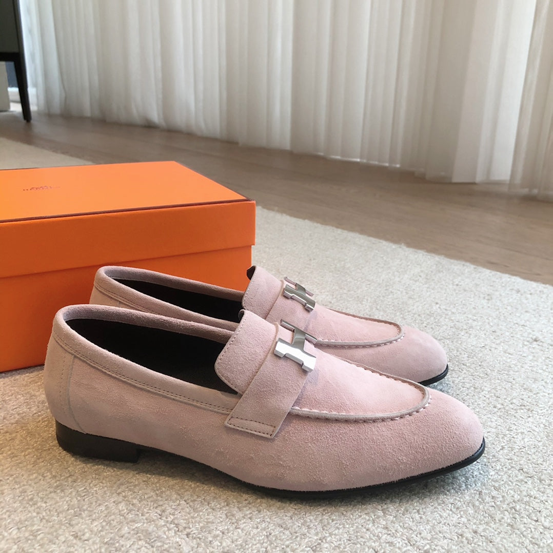 Paris Loafer Light Pink Suede Calfskin With Silver Signature Buckle 509374