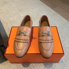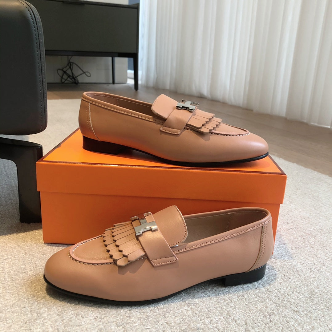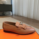 Royal Loafer Beige Perlino Calfskin With Fringe Detail And Silver Signature Buckle 509417