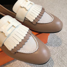 Royal Loafer Brown Mix White Calfskin With Fringe Detail And White Signature Buckle 509411