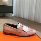 Royal Loafer Pink Mix White Calfskin With Fringe Detail And Silver Signature Buckle 509418