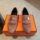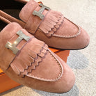 Royal Loafer Pink Suede Calfskin With Fringe Detail And Silver Signature Buckle 509432