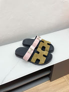 CHYPRE SANDAL ARMY GREEN MIX PASTEL PINK SUEDE WITH H BUCKLE