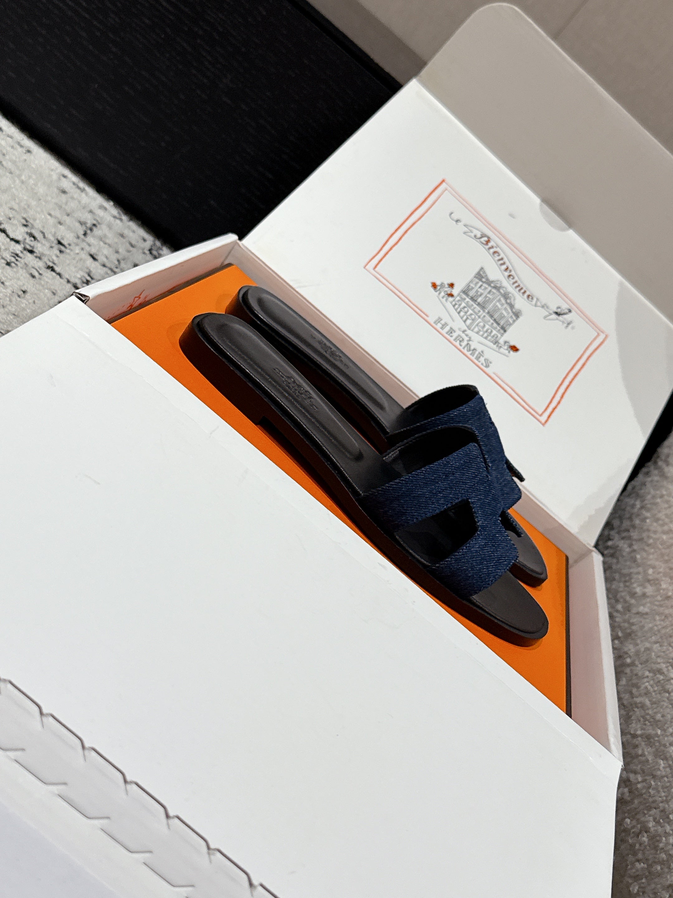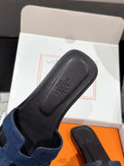 HM 25 Oran Sandal Black Calfskin Dark Blue Denim