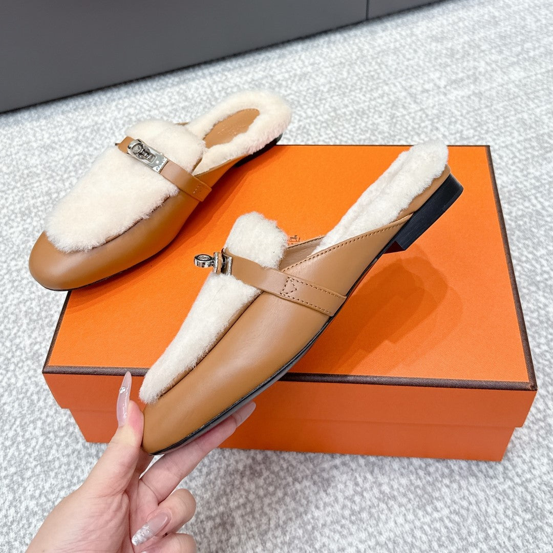 HM 25ss Oz Mule Brown Goatskin And Shearling 461944