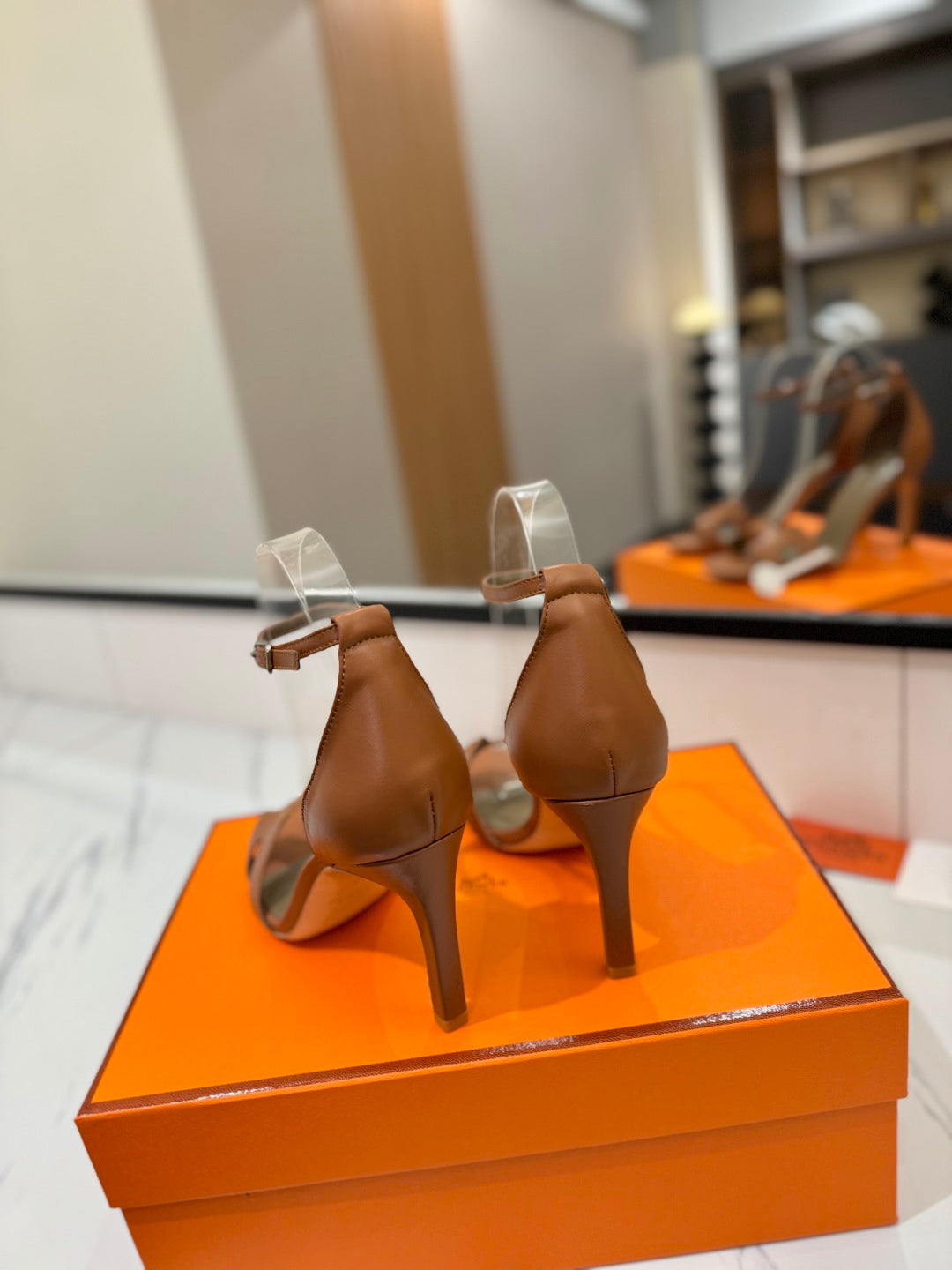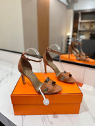 HM Joy 90mm Heeled Sandals Brown Flat Cowhide 294921