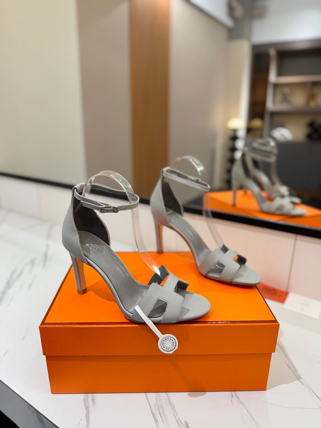 HM Joy Heeled Sandals Gray Cowhide 294898