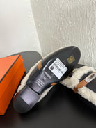 HM Oz Mule Black Mix White Lambskin Lined With Wool Fleece 961093