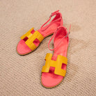 • Material: Sandal in calfskin with straight cut edges, "H" cut-out detail and thin ankle strap.
