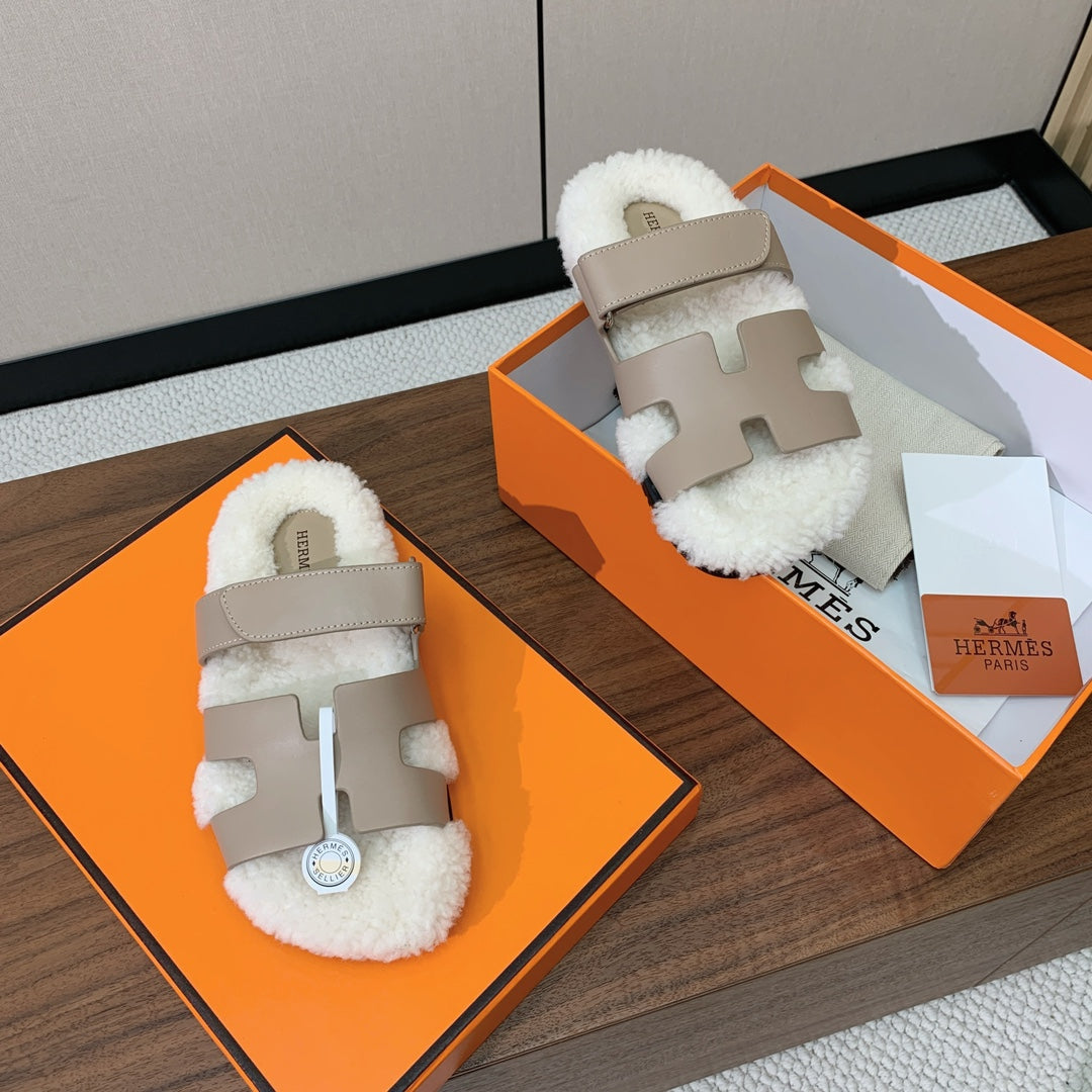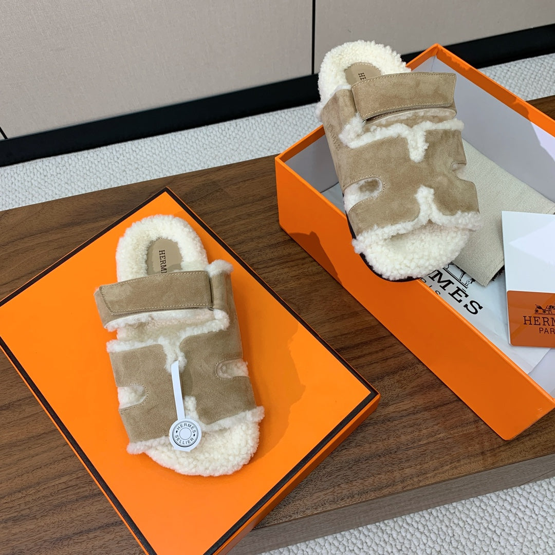 HM Chypre Sandal In Dark Beige Lamb Wool 984181