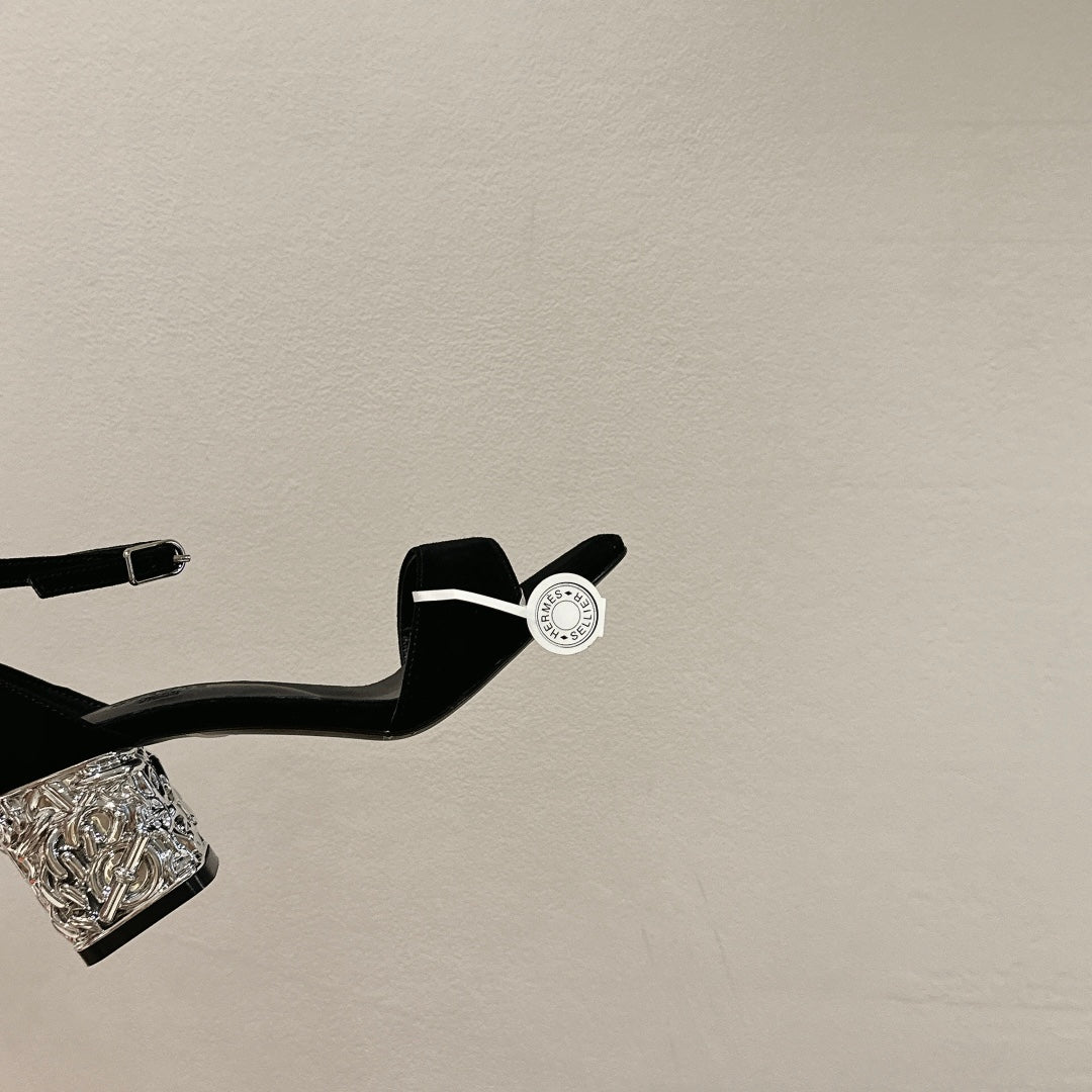 H - CLASSIC SANDAL 125 BLACK LAMBSKIN