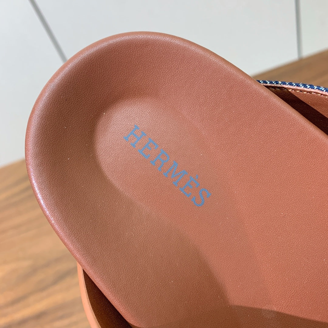 HM 25 Oran Sandal Brown Calfskin Dark Blue Denim