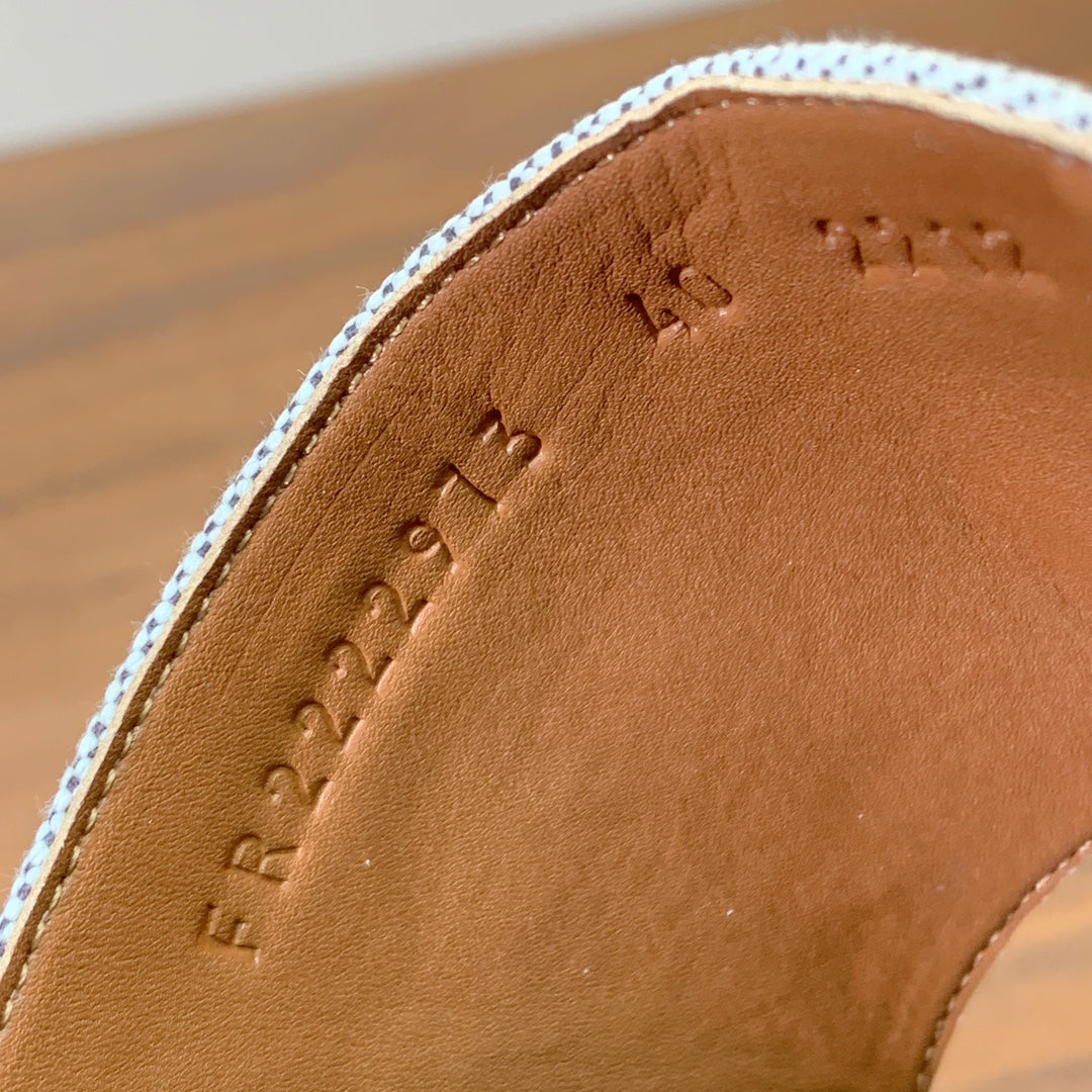 HM 25 Oran Sandal White Calfskin Blue Denim