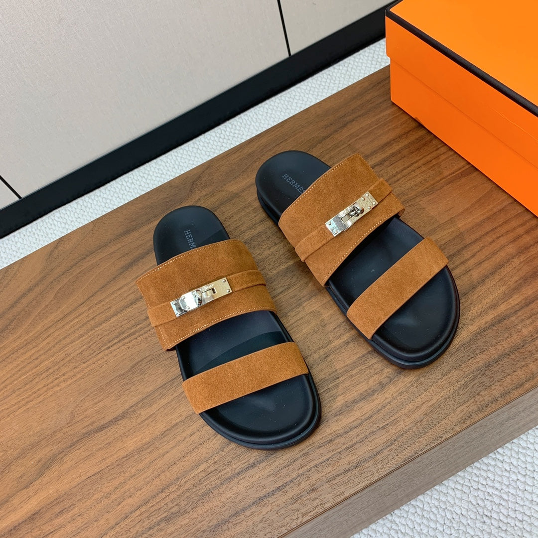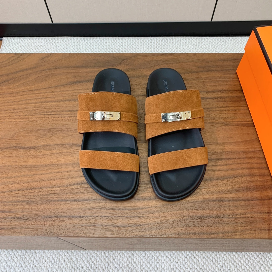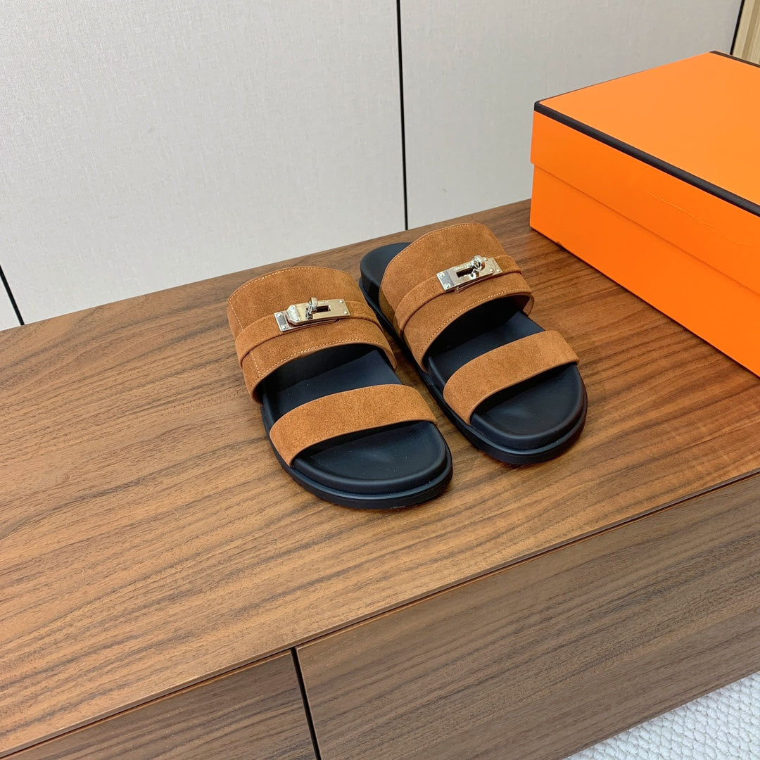 HM Kazimir Sandal Brown Suede Calfskin 294031