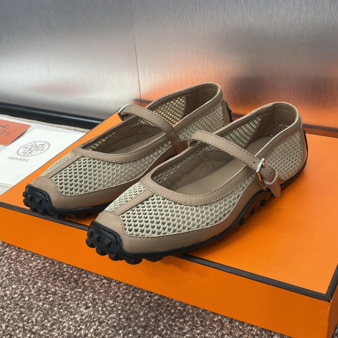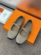 HM 25C Kichu Ballet Flat Tortilla Brown Fabric with Calfskin 208281