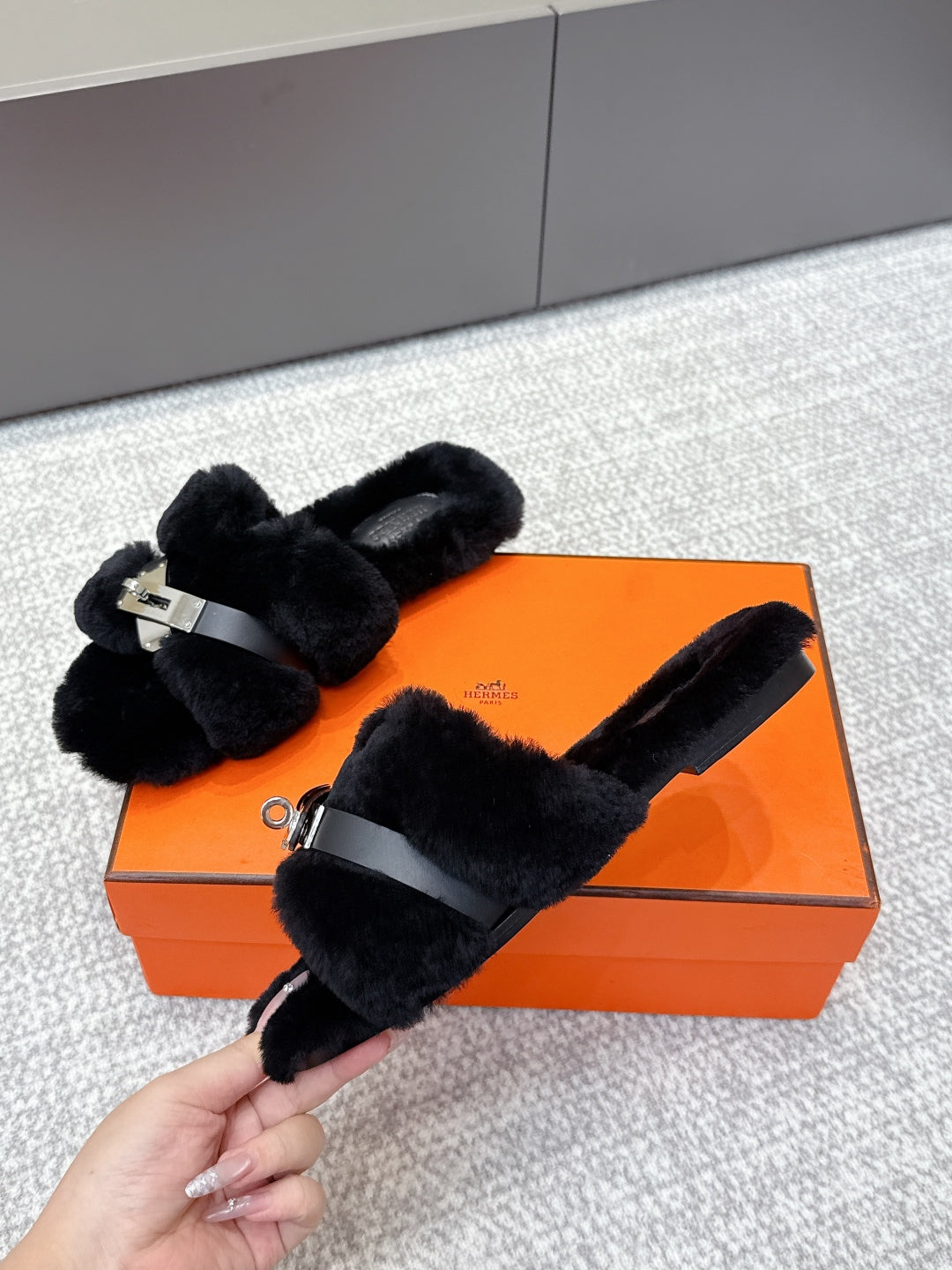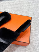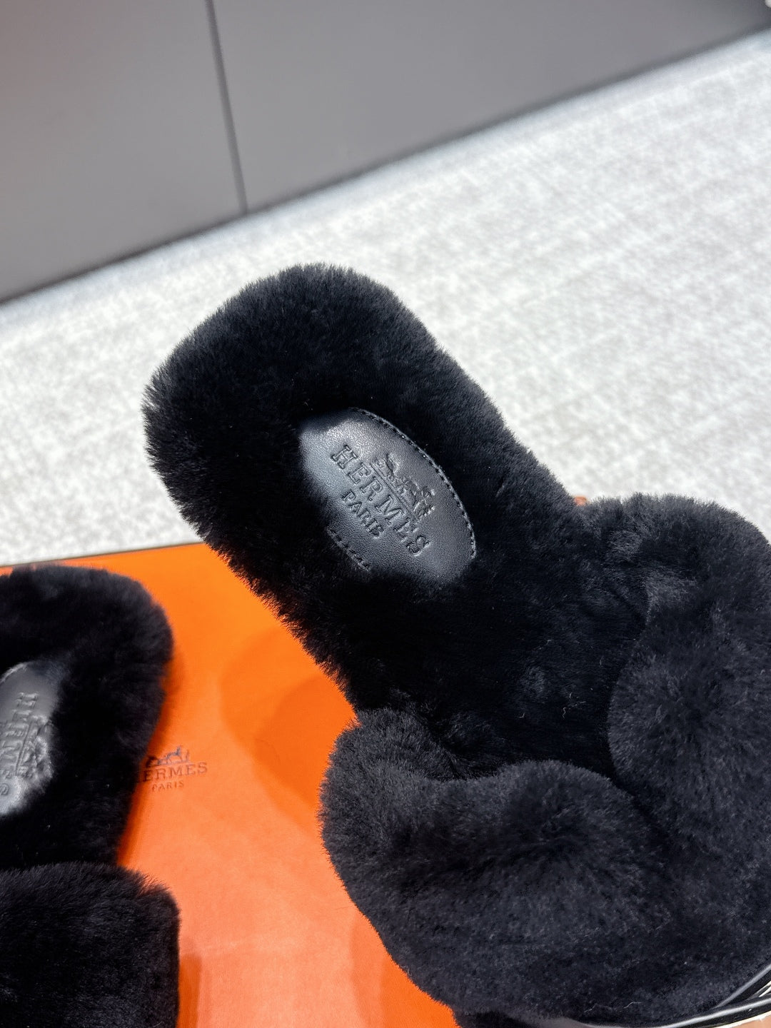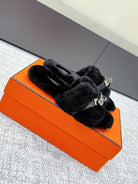 HM 25s H Shaped Slipper with Buckle Black Shearling 462196