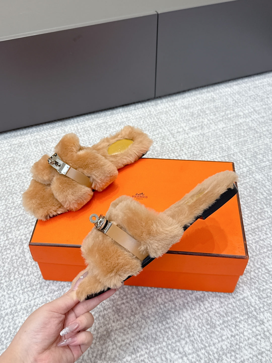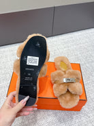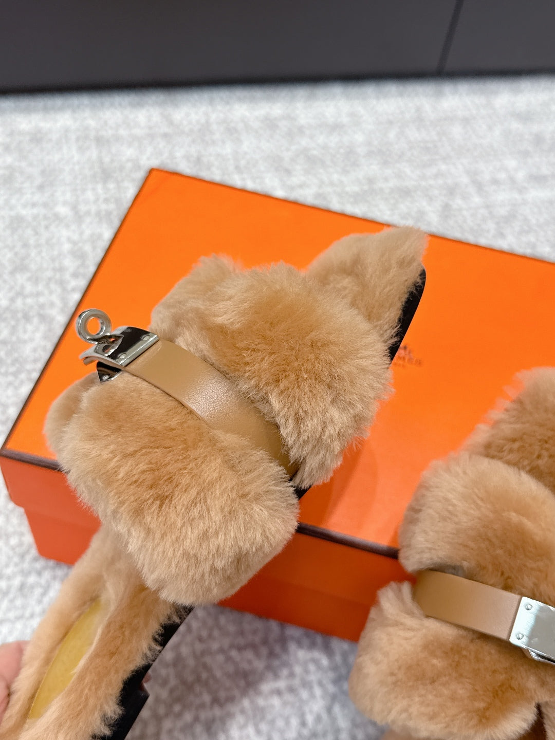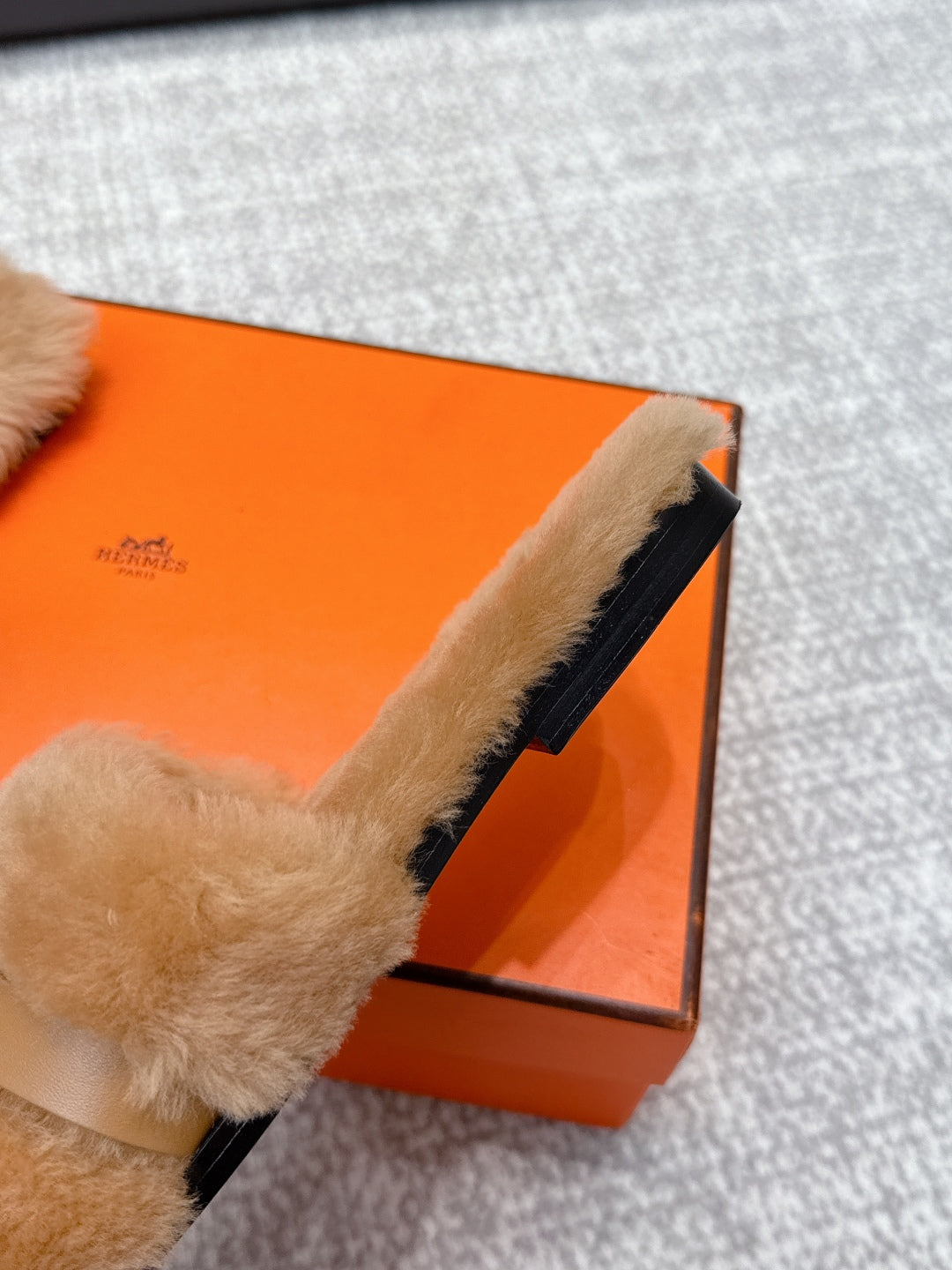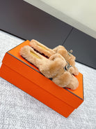 HM 25s H Shaped Slipper with Buckle Light Brown Shearling 462193