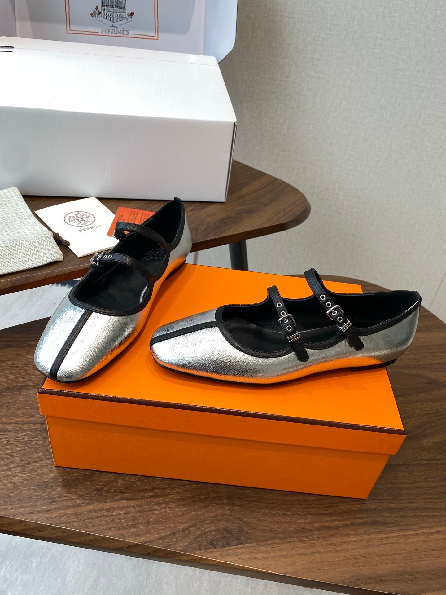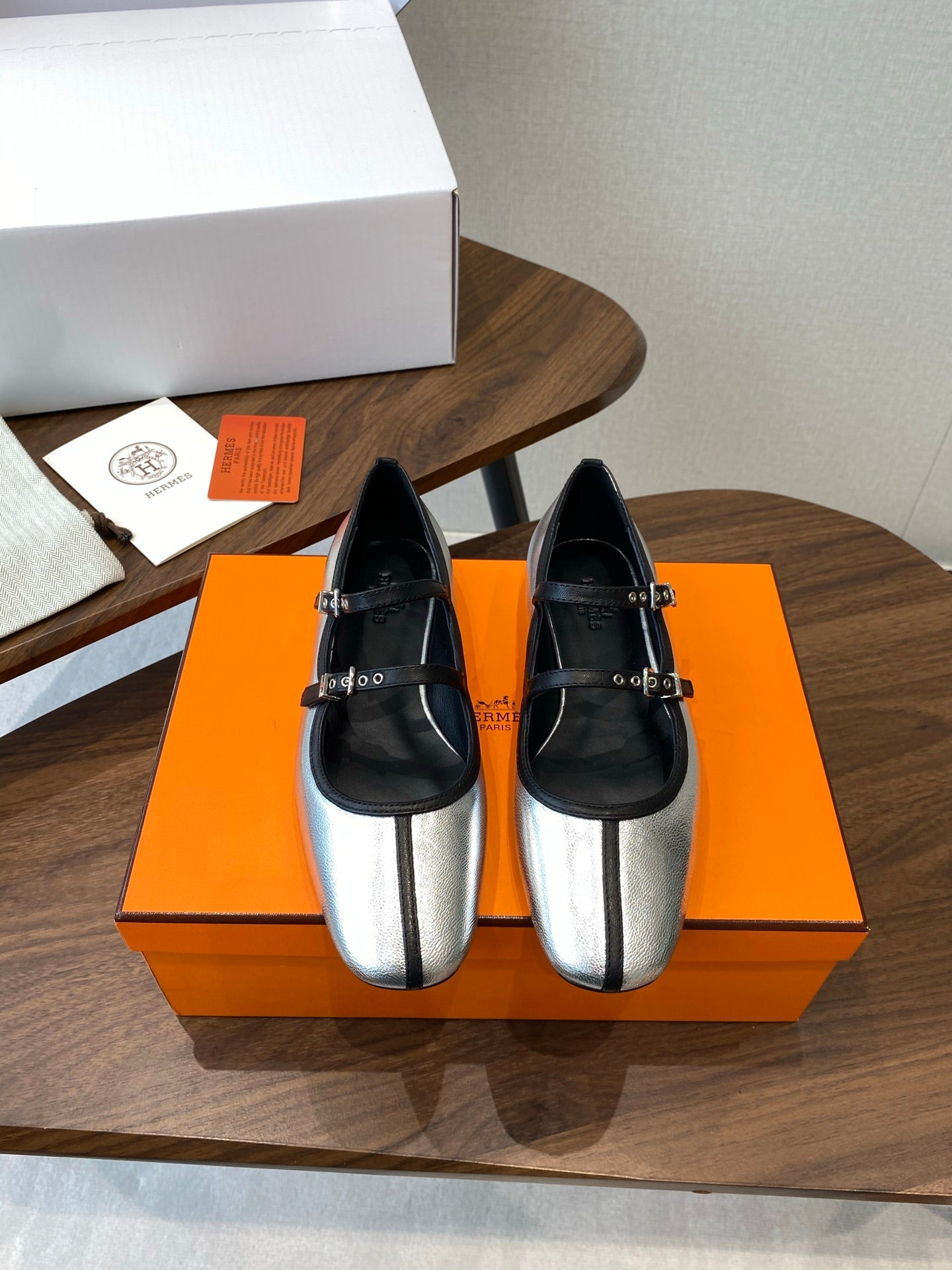 HM 25s Mary Jane Double strap Sliver Calfskin 422563