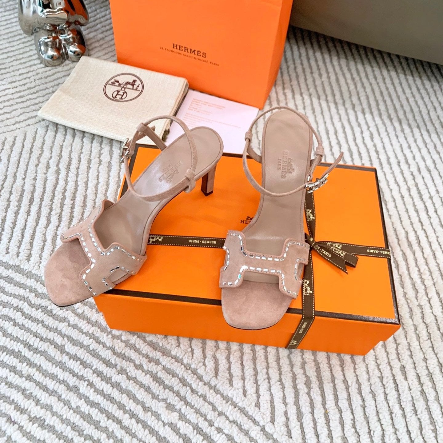 HM Heden sandal 85mm Pink Beige With Rhinestones Suede 963267