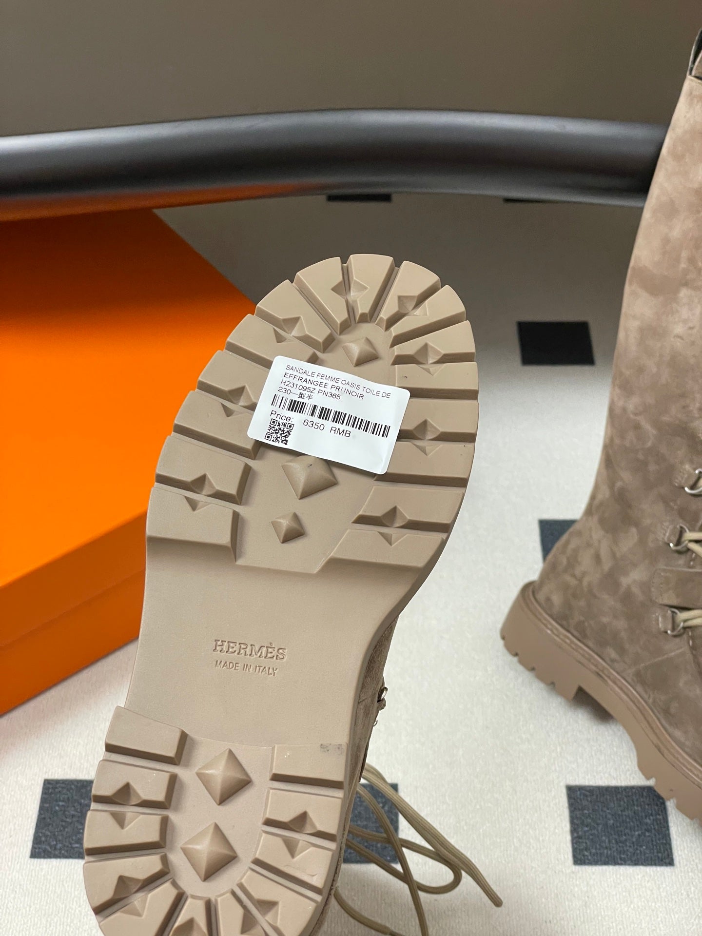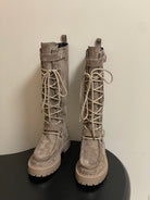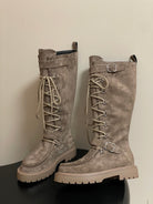 HM Lace Up Boots 25mm Belt Buckle Taupe Suede