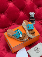 HM Lthea Espadrille Brown Mix Blue Suede And Jute Rope 969490