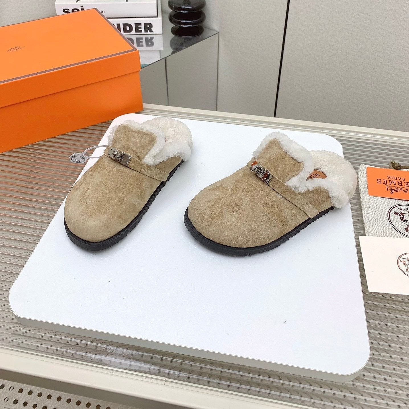 HM Mule 30mm In Light Brown Beige With Fleece And Suede Lining 971396