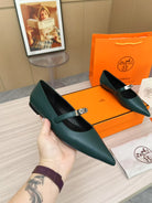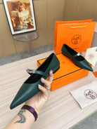 Kiara Slingback Flat Dark Green Calfskin 214058