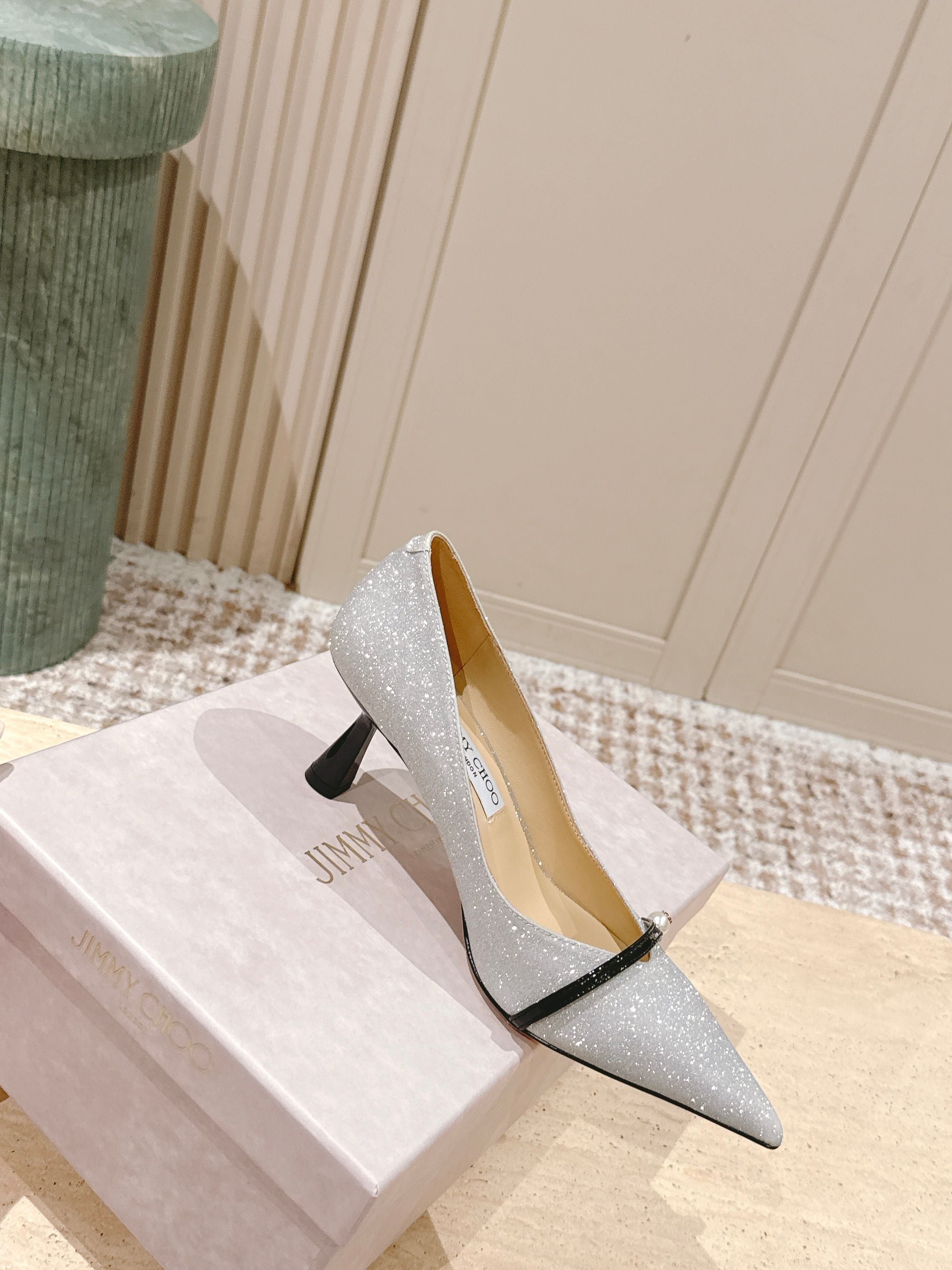 Jimmy 25 Amita Pump 65mm Sliver Glitter & Patent Leather 431864